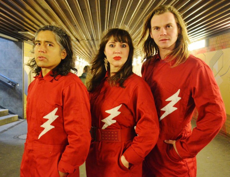 Our shows are like a psychotic radio broadcast from another planet – I am the hostess of the show, and I try to run a tight ship that relentlessly charges through until we hit the last notes. We wear uniforms at all times (the stage uniform is a red jumpsuit with a white lightning bolt emblazoned on it, and we have separate uniforms for offstage). We are a gang, and want to inspire the audience to join us.